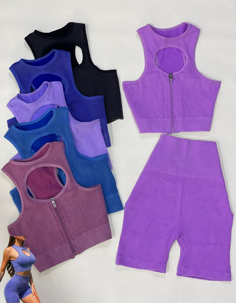 CONJUNTOS SHORT CON TOP CON ZIPPER EFECTO LAVADO